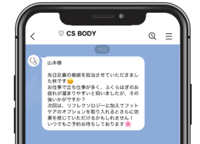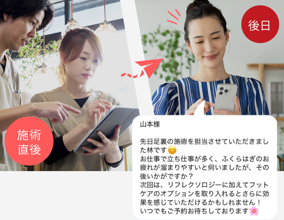 さらに、このメッセージに前回来店時の話題も織り交ぜることで、お客様に驚きと感動を与え、