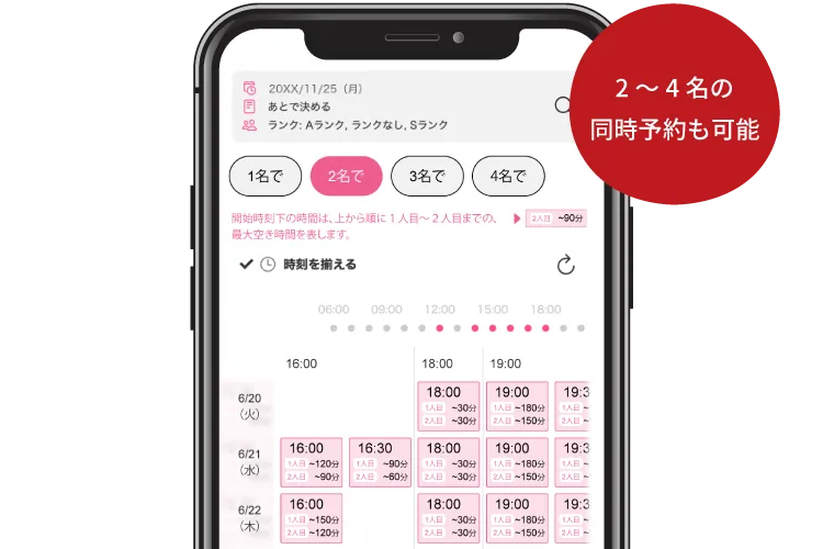 2~4名での同時予約も可能で、